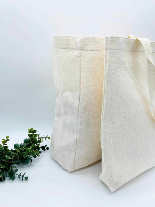 Linen Burlap Tote Bag with Gusset for Sublimation - Large