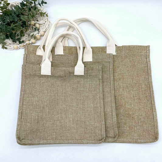 Linen Burlap Tote Bag with Gusset for Sublimation - Small