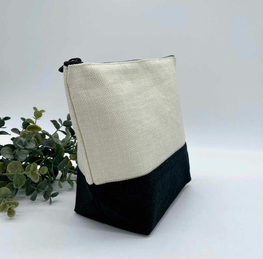 Linen Zipper Cosmetic Bag with Black Base for Sublimation