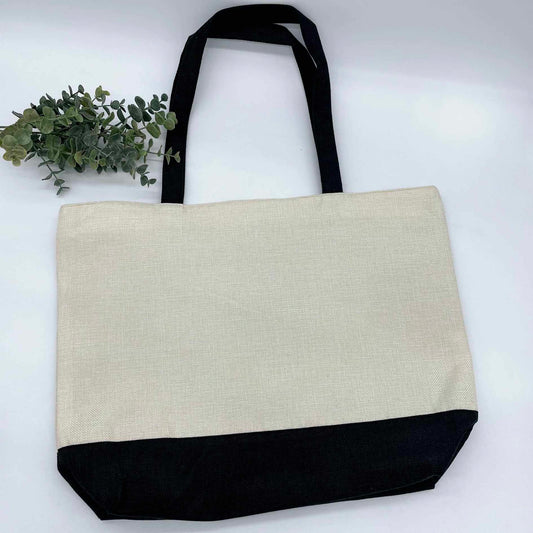 Linen Zipper Shopping Bag with Black Base for Sublimation