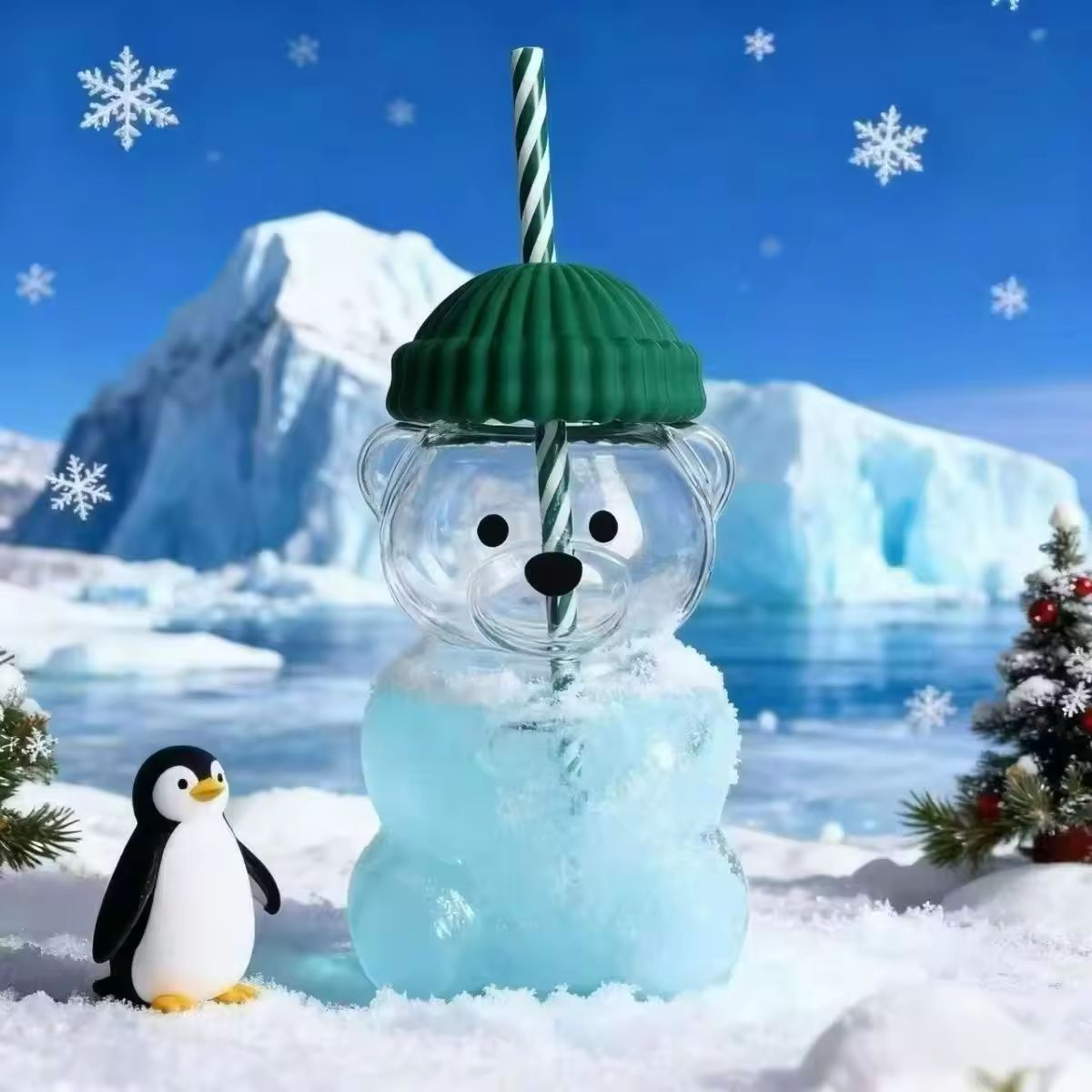 Made from clear borosilicate glass (lightweight + durable), they’re perfect for sipping iced drinks, fun soda mixes, or cozy winter beverages.