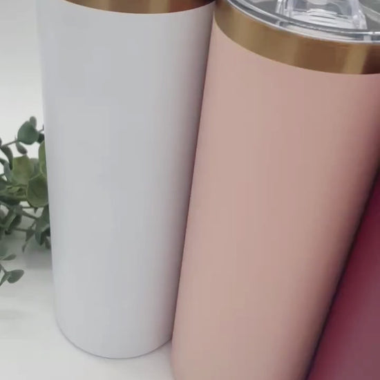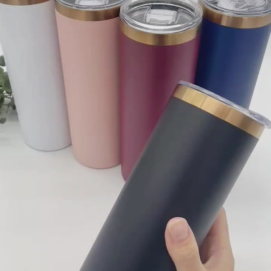 Introducing the latest addition to our 20oz tumbler family - these eye-catching rich deep coloured powder coated 20oz tumblers offer a fun rose gold copper plating! Perfect for engraving personalization - the rose gold copper plating will be shining through beneath the engraved design!