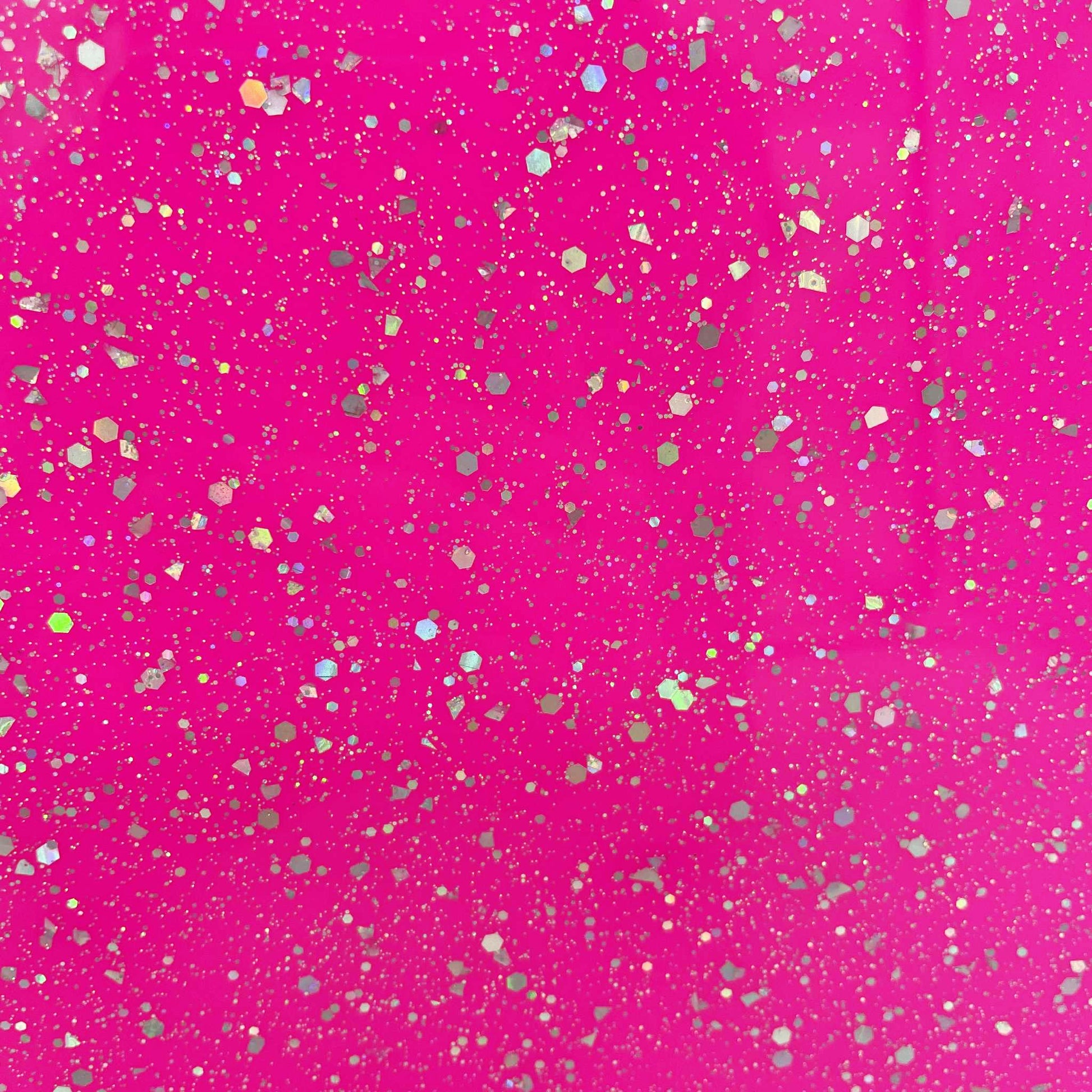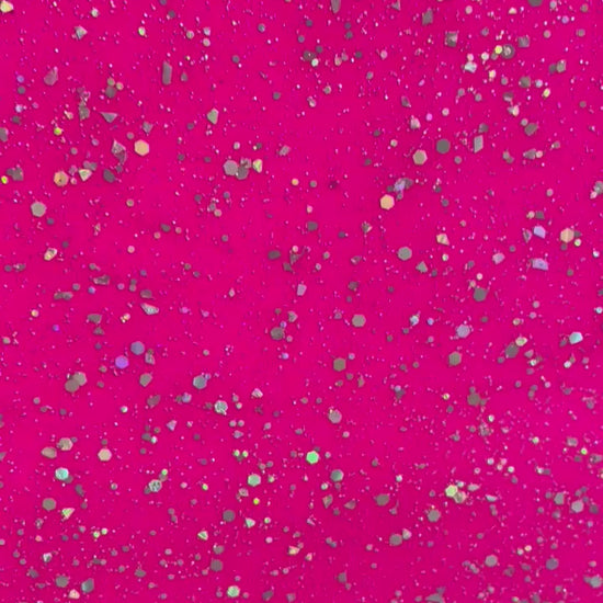 | Side 1: | Fuchsia gloss with silver holographic hex and micro glitter sprinkled on top |