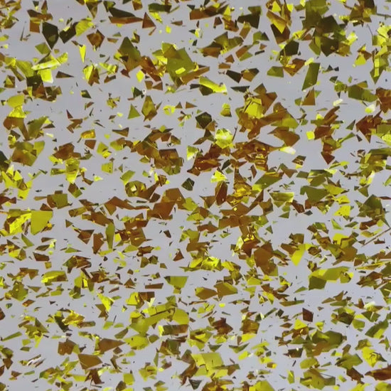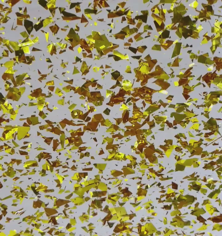 | Side 1: | Glossy gold holographic glitter cuts |
