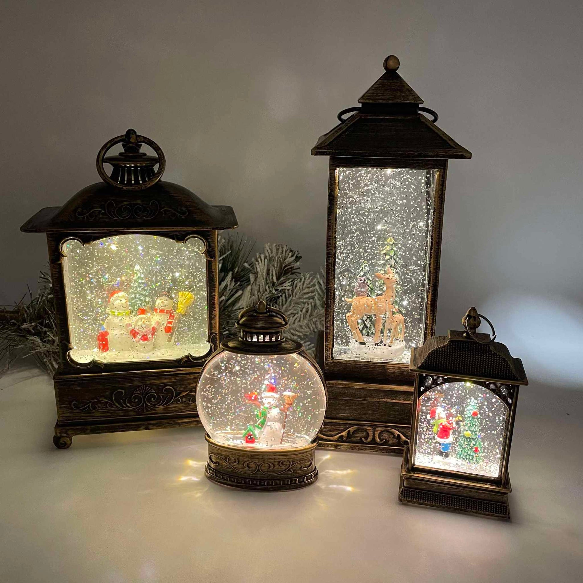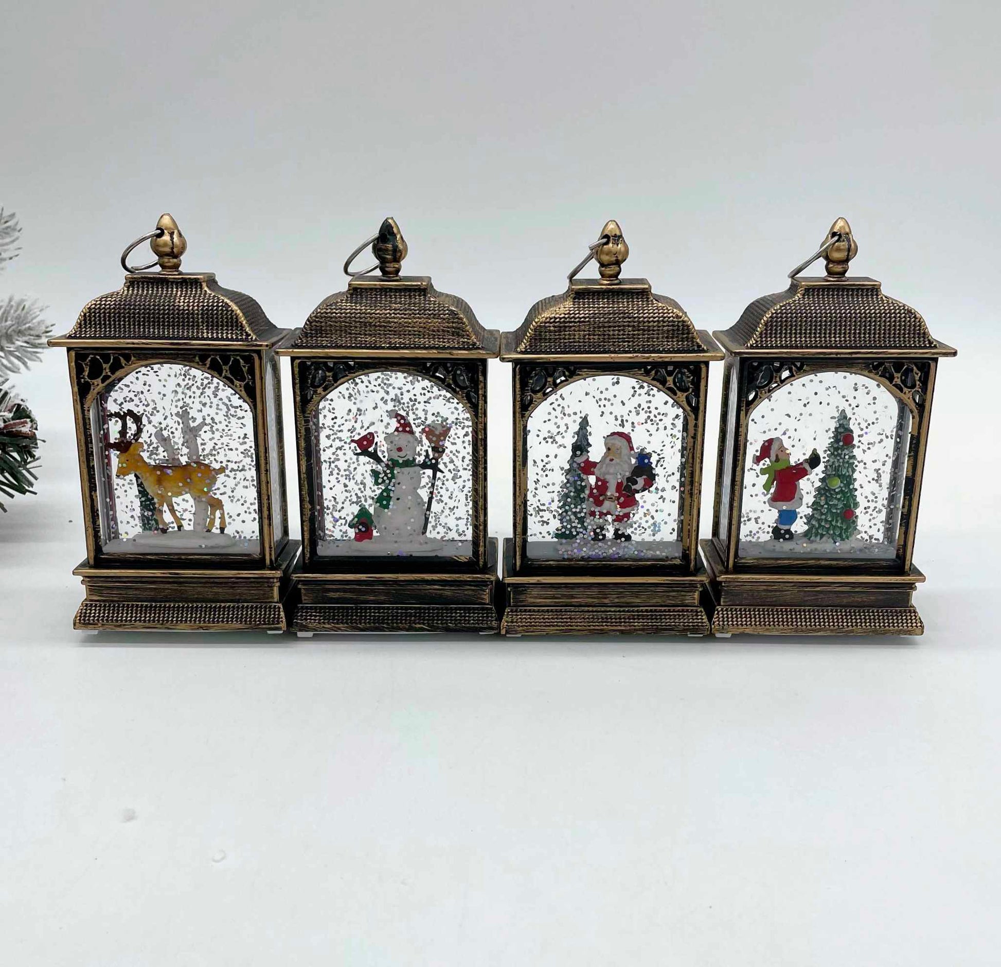 These beauties light-up with light led light and have glitter inside the globe creating a beautiful Christmas scene. These use 3 LR44 batteries (not included)