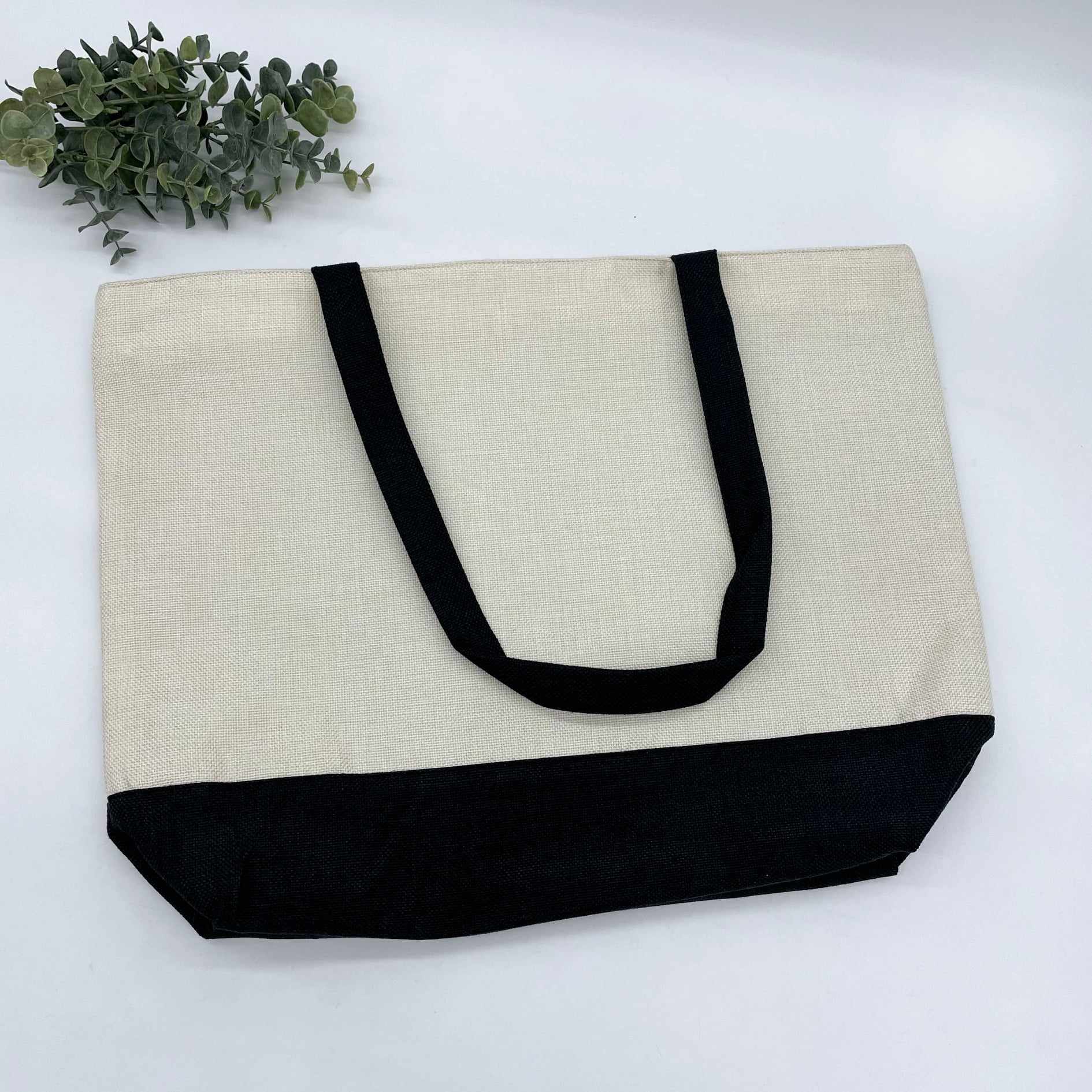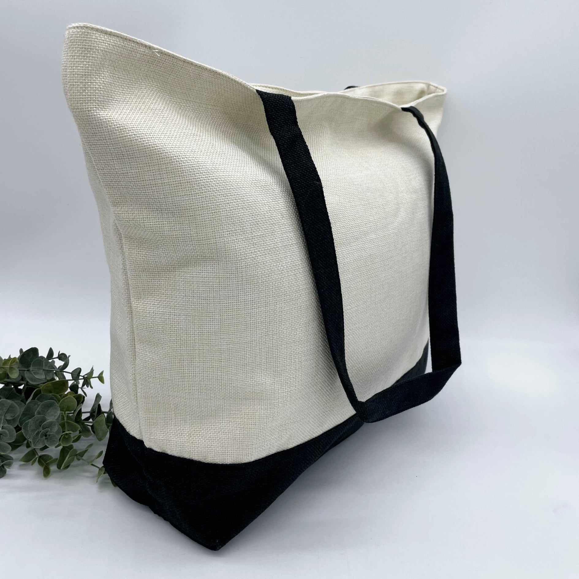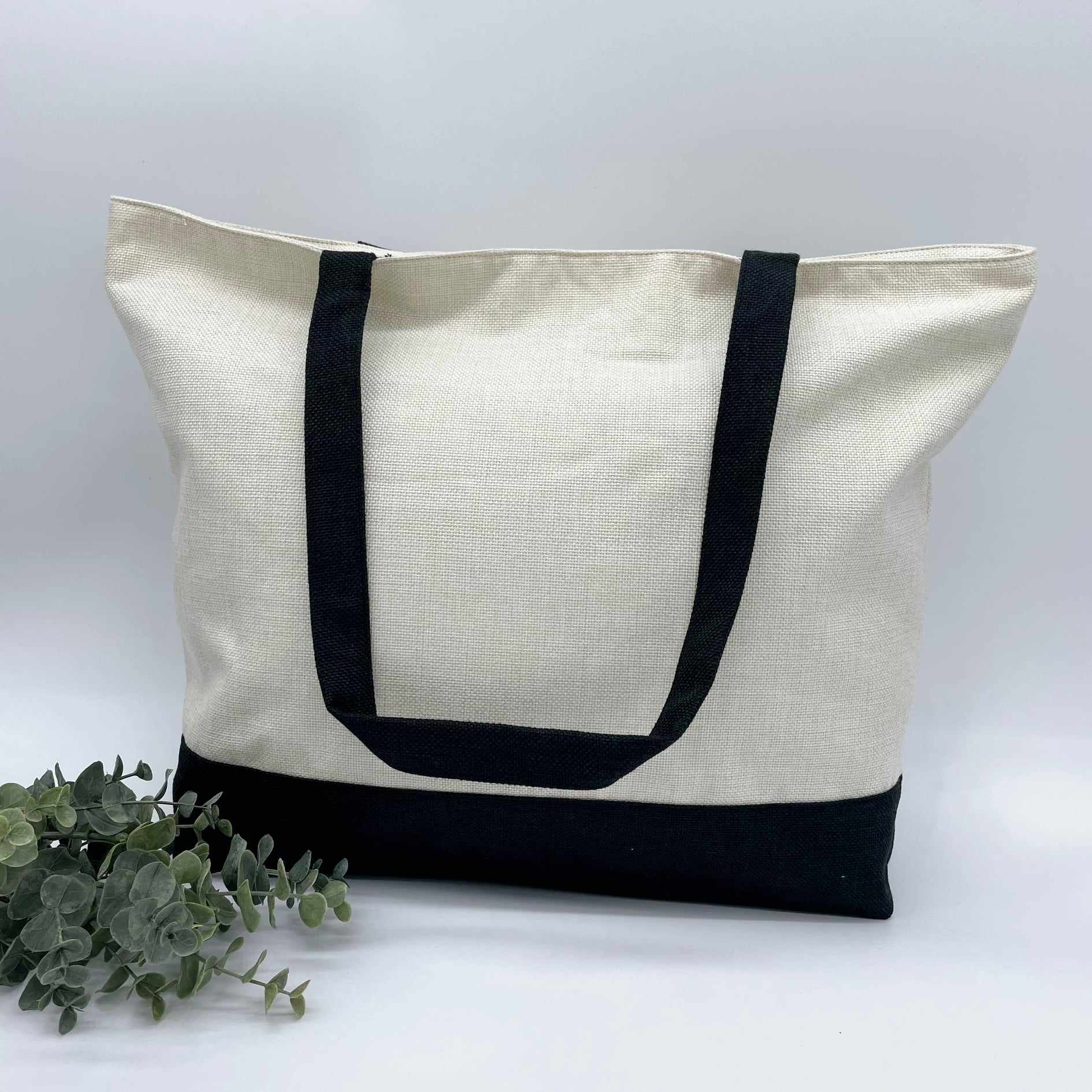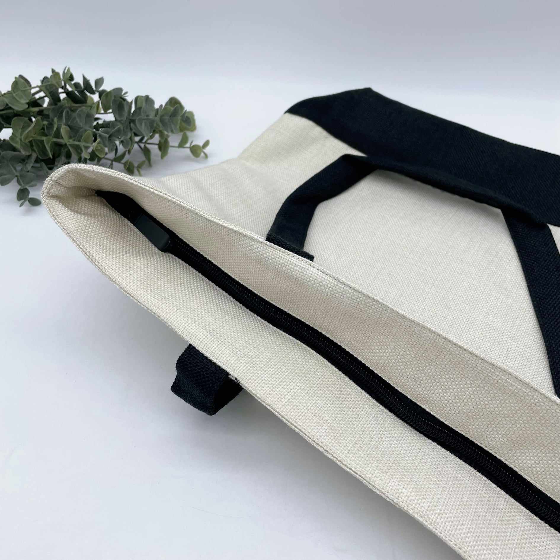 Linen Zipper Shopping Bag with Black Base for Sublimation