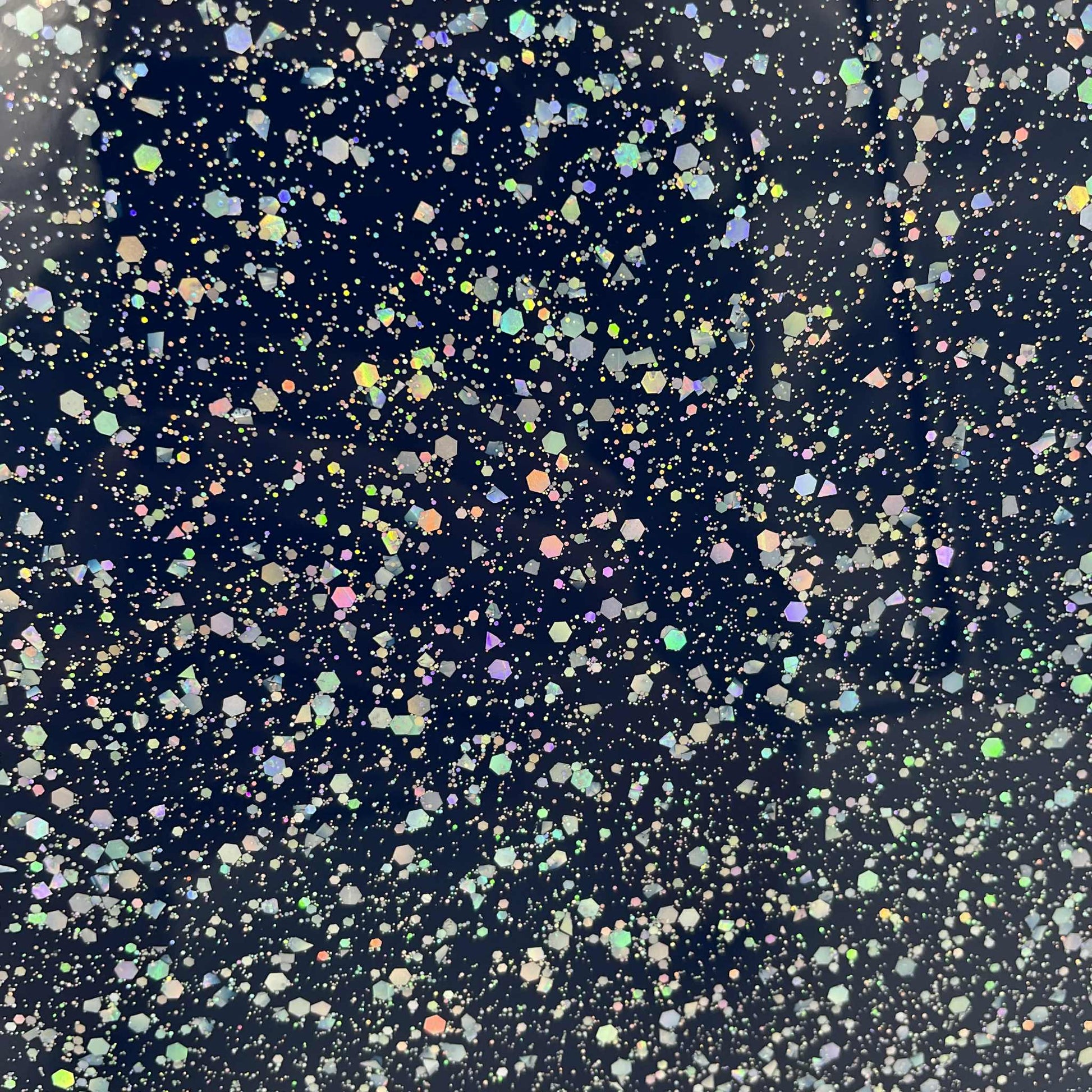 | Side 1: | Navy gloss with silver holographic hex and micro glitter sprinkled on top |