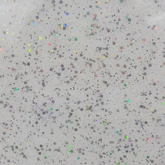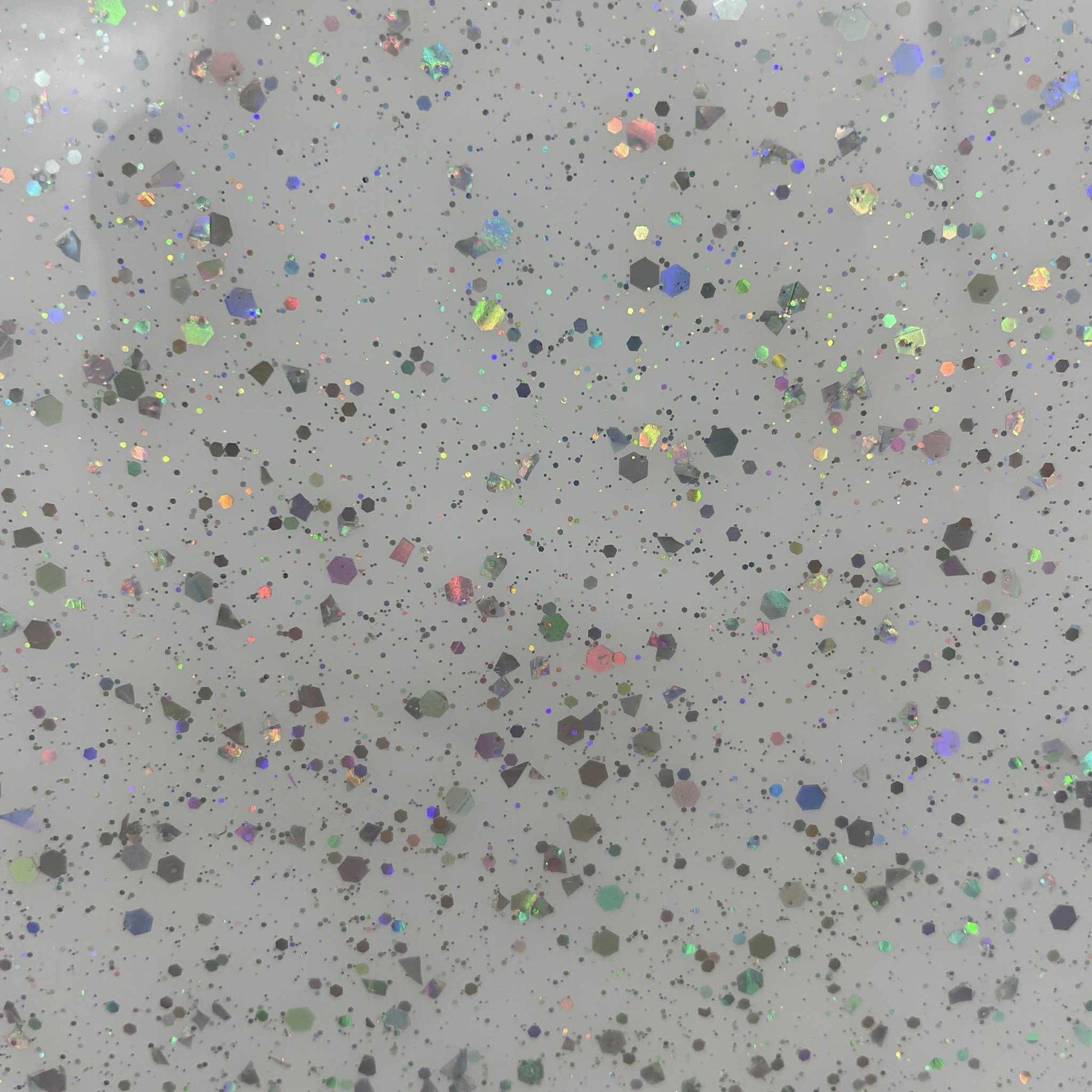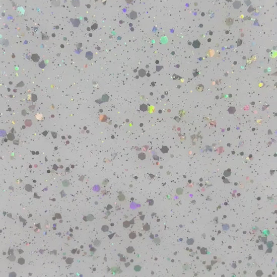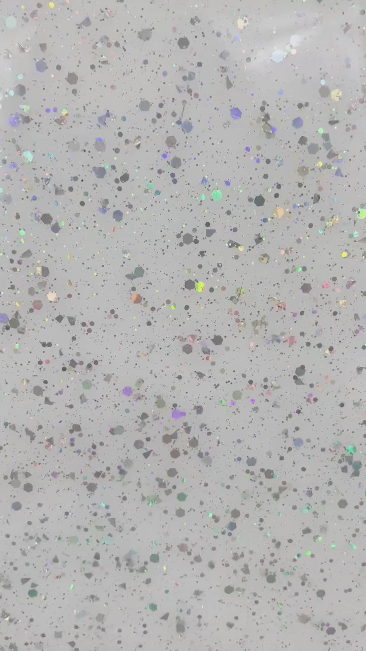 | Side 1: | Gloss with silver holographic hex and micro glitter sprinkled on top |