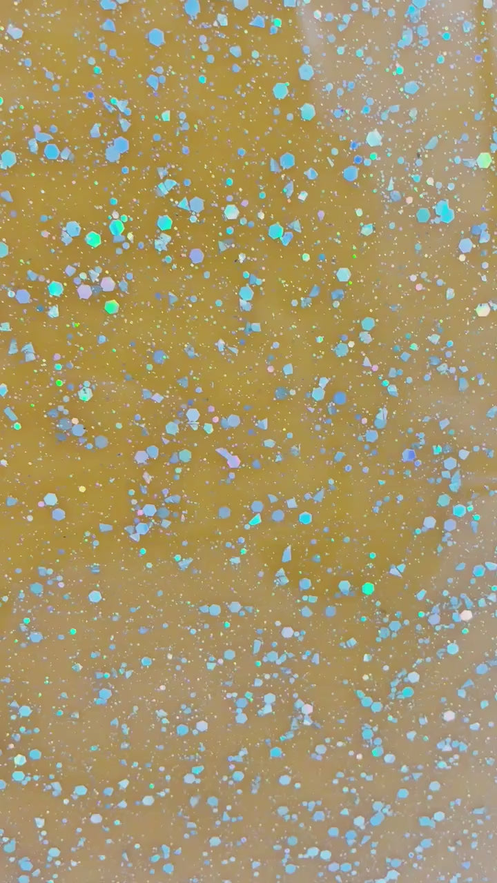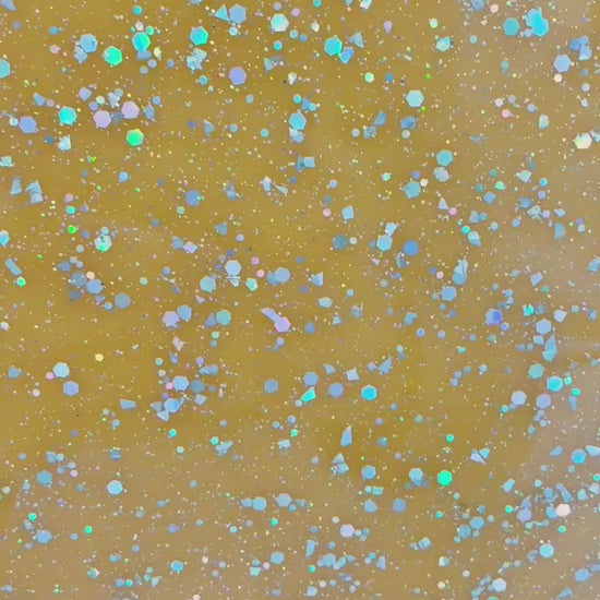 | Side 1: | Orange gloss with silver holographic hex and micro glitter sprinkled on top |
