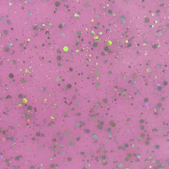 | Side 1: | Pink gloss with silver holographic hex and micro glitter sprinkled on top |