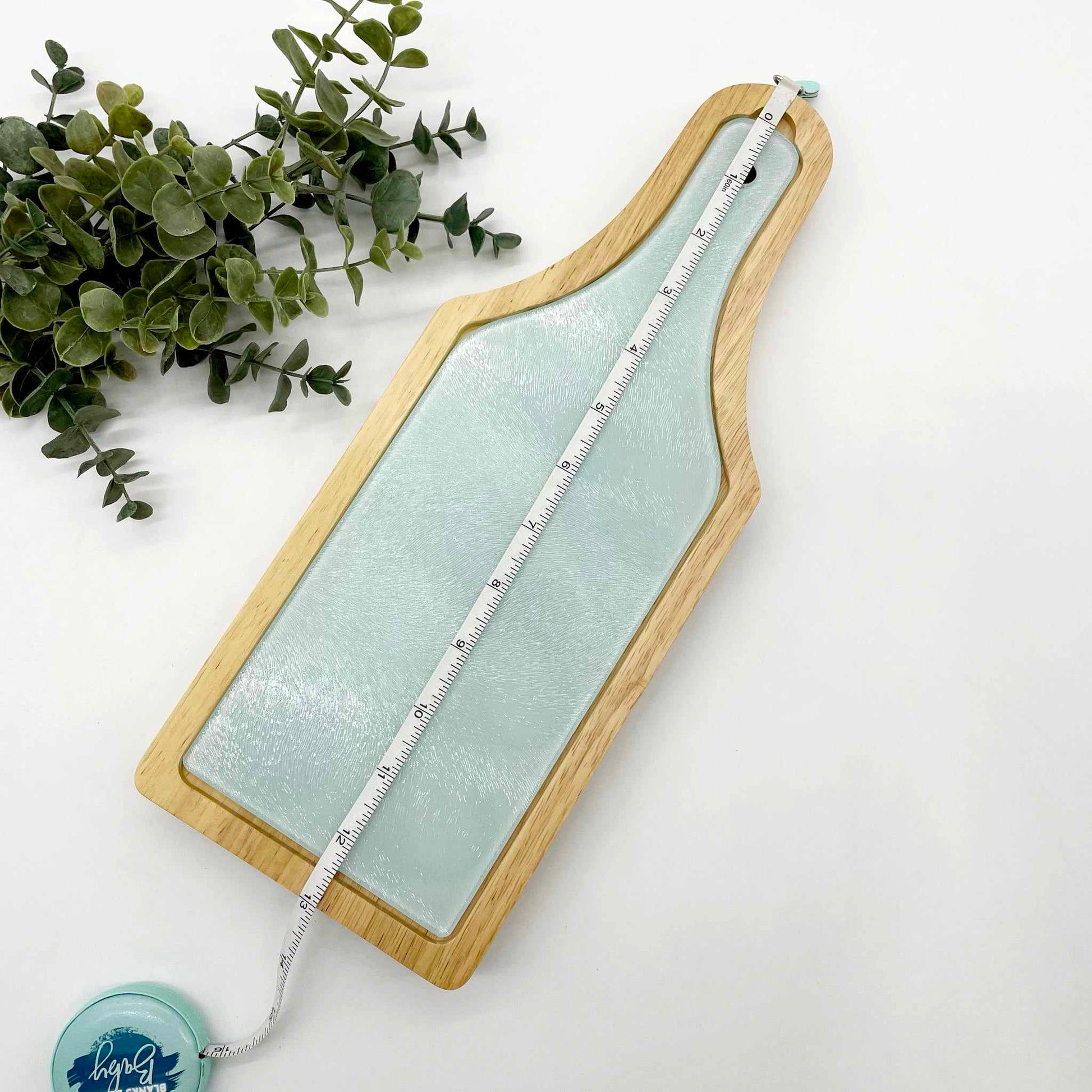 This textured glass cutting board is designed to frame and enhance full-color sublimation photographs in a stunning presentation. Inside the box you will find a cheese knife and fork, a drip stop collar, corkscrew opener and knife along with a wine stopper and glass cutting board as the cover