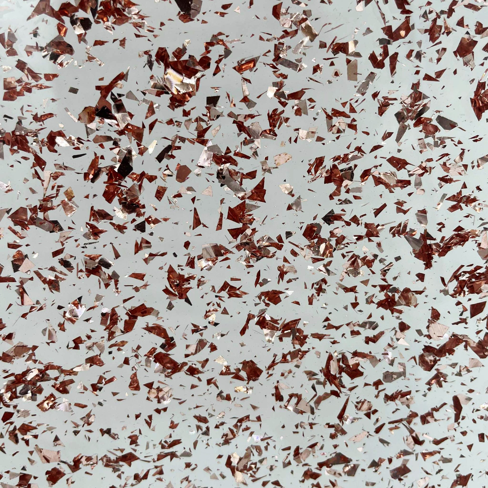 | Side 1: | Glossy rose gold holographic glitter cuts |