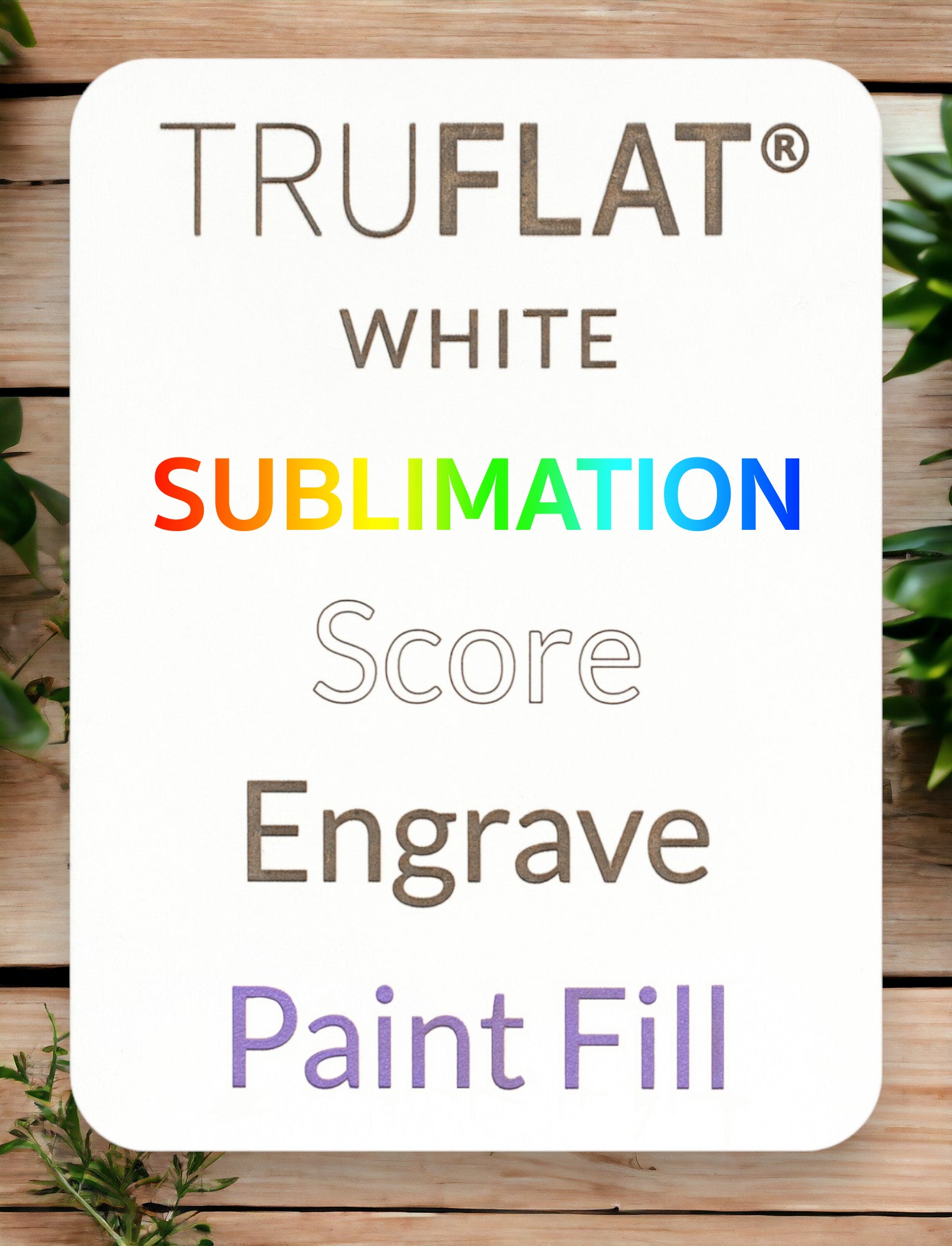| Specs: | TruFlat® laser sheets are always sold good 2 sides and is pressed onto a defect free MDF core for easy cutting. Thickness is approximately 3mm. Sizes of sheets can vary +/- 1/4" |