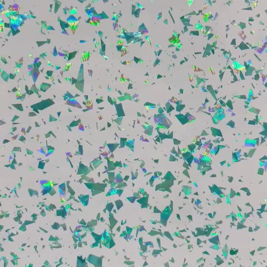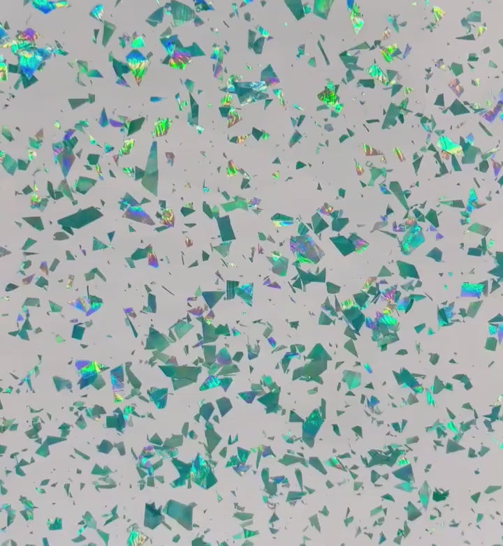 | Side 1: | Glossy turquoise holographic glitter cuts |