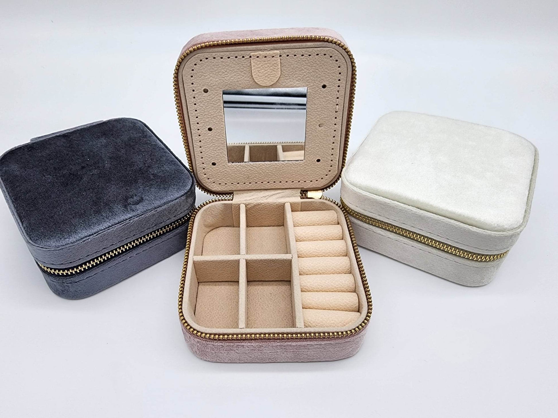These are the softest velvet material, perfect for sublimation, dtf or htv personalization. Each box comes with removable dividers for small items, multiple compartments and a built in mirror.
