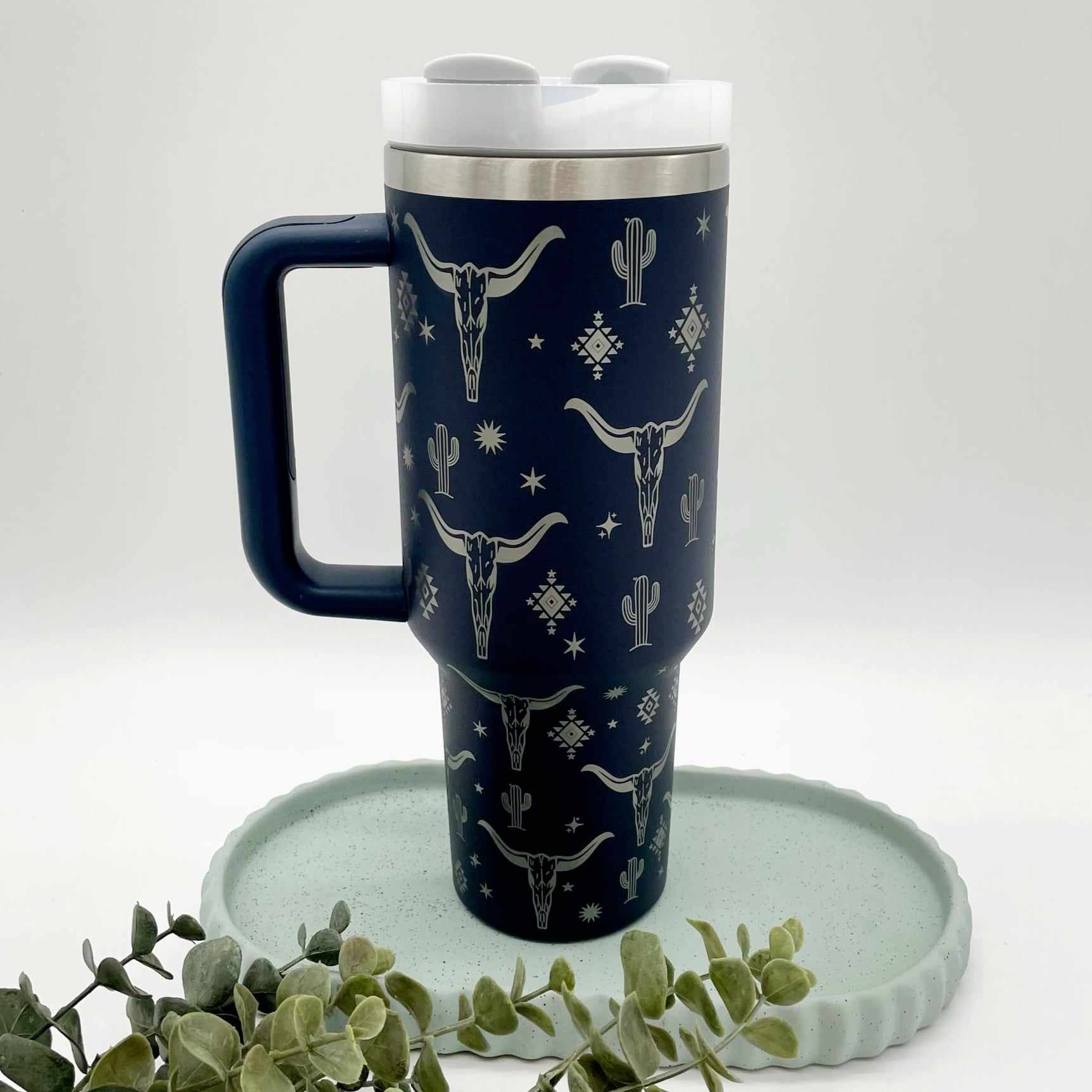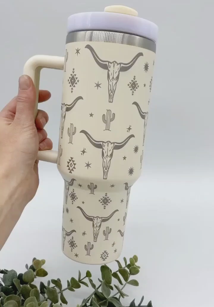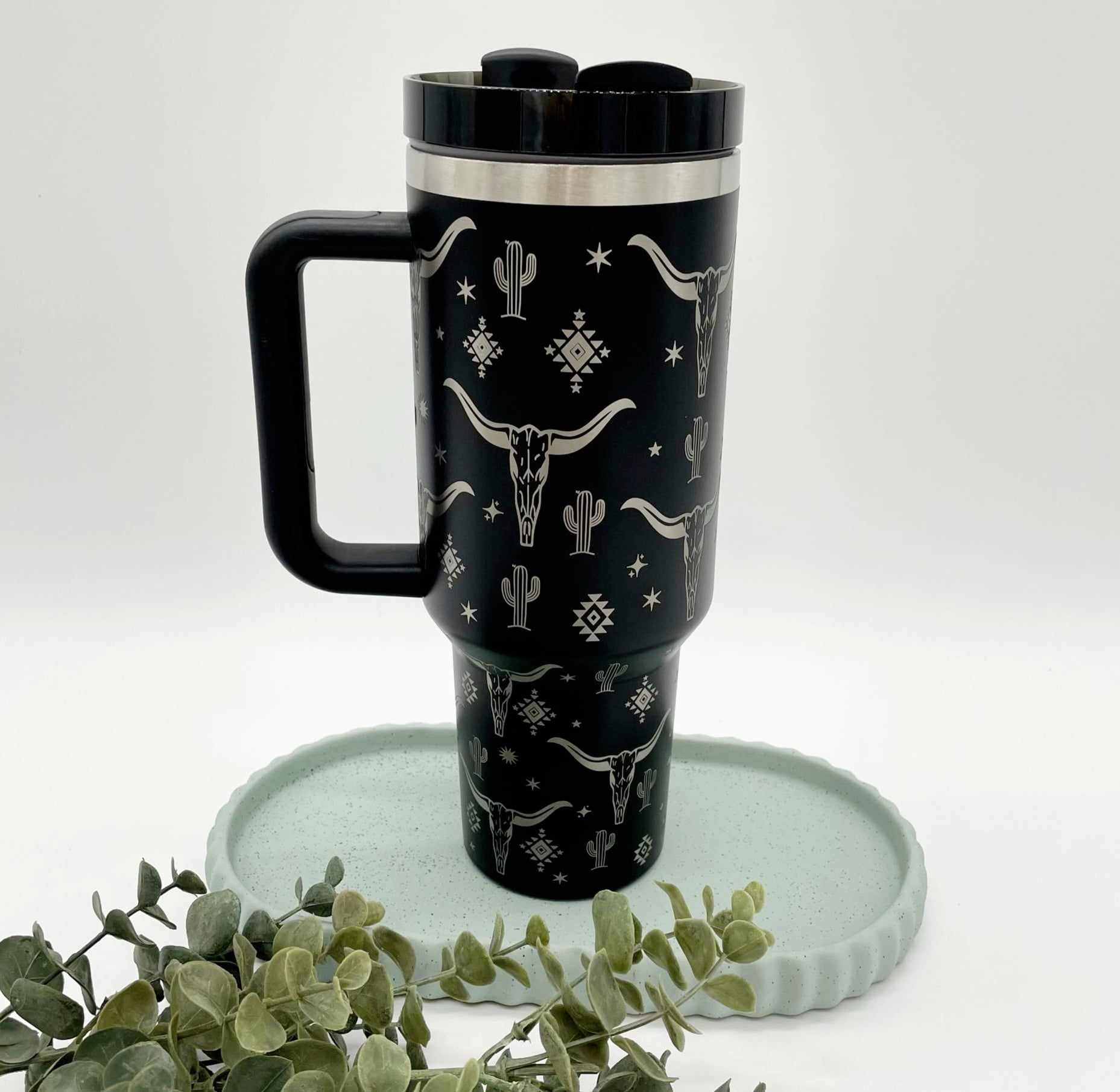 Everybody's favourite 40oz tumblers, now available in 5 brand new engraved western designs! Sooooo pretty - these are gen2 lids, and come already engraved for you!